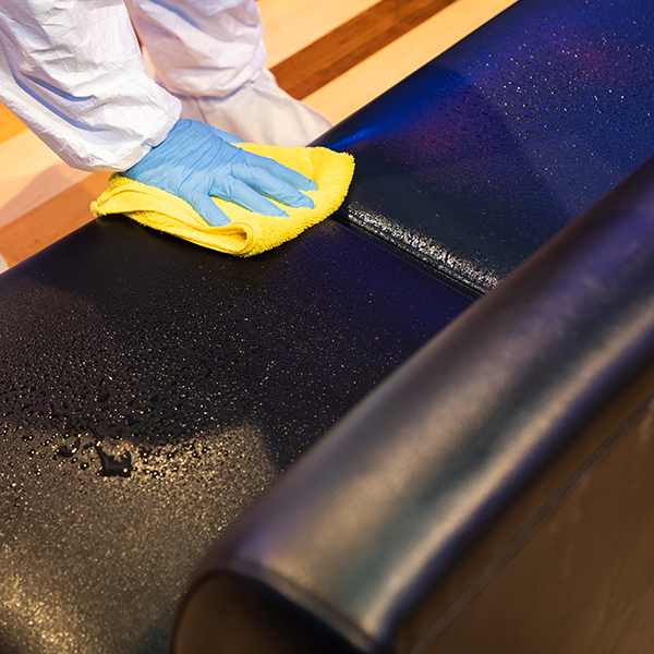 壁、床、家具類の拭き作業テーブルの脚などウィルス付着の可能性が限りなく“0”に成るように丁寧に拭き作業を行います。