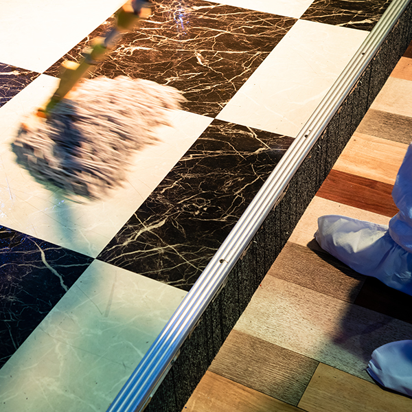 タイル、エンビ系フローリング、コンクリート系床材等、拭き掃除致します。カーペット系床材はリンサークリーナーを使用します。